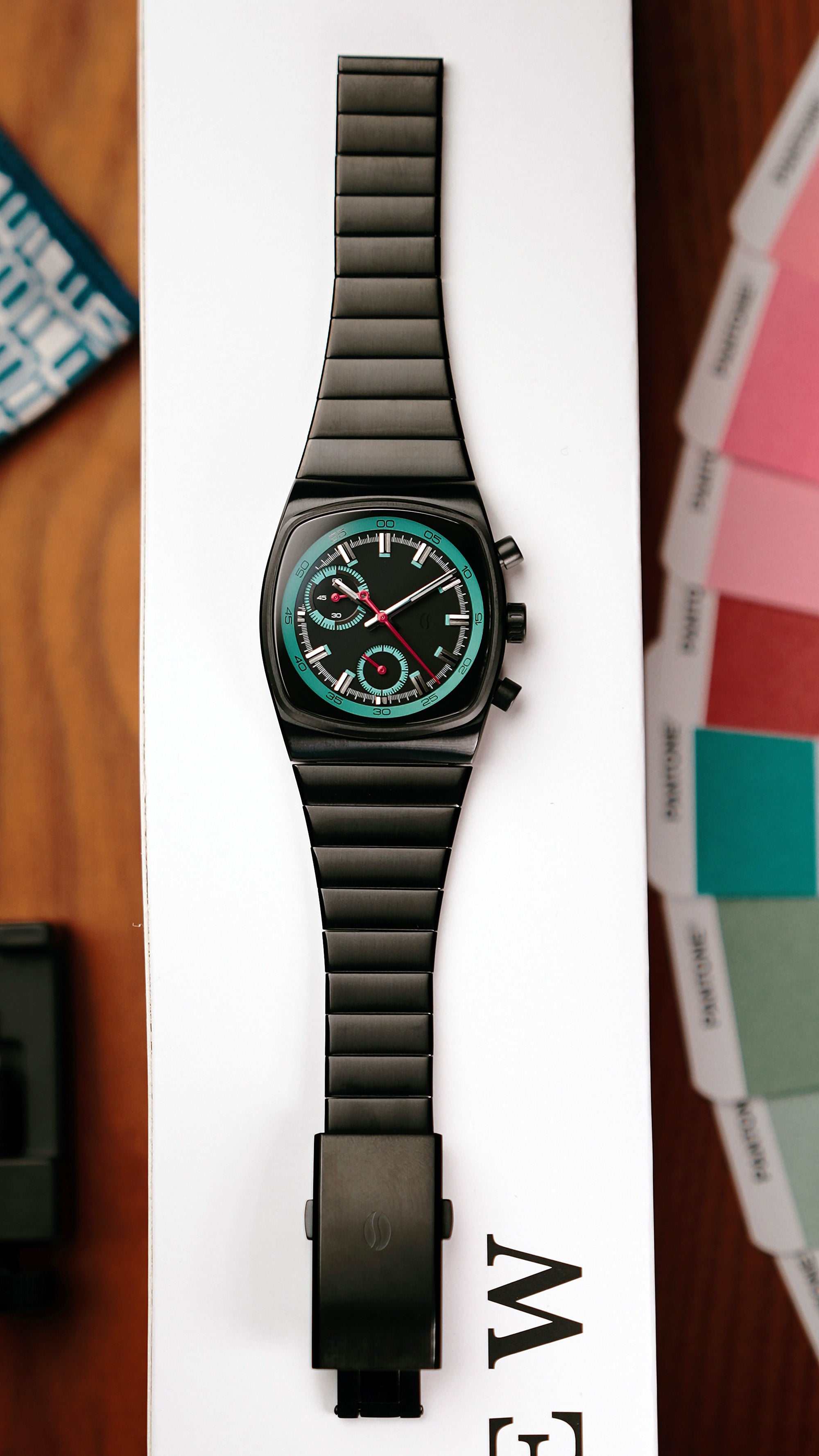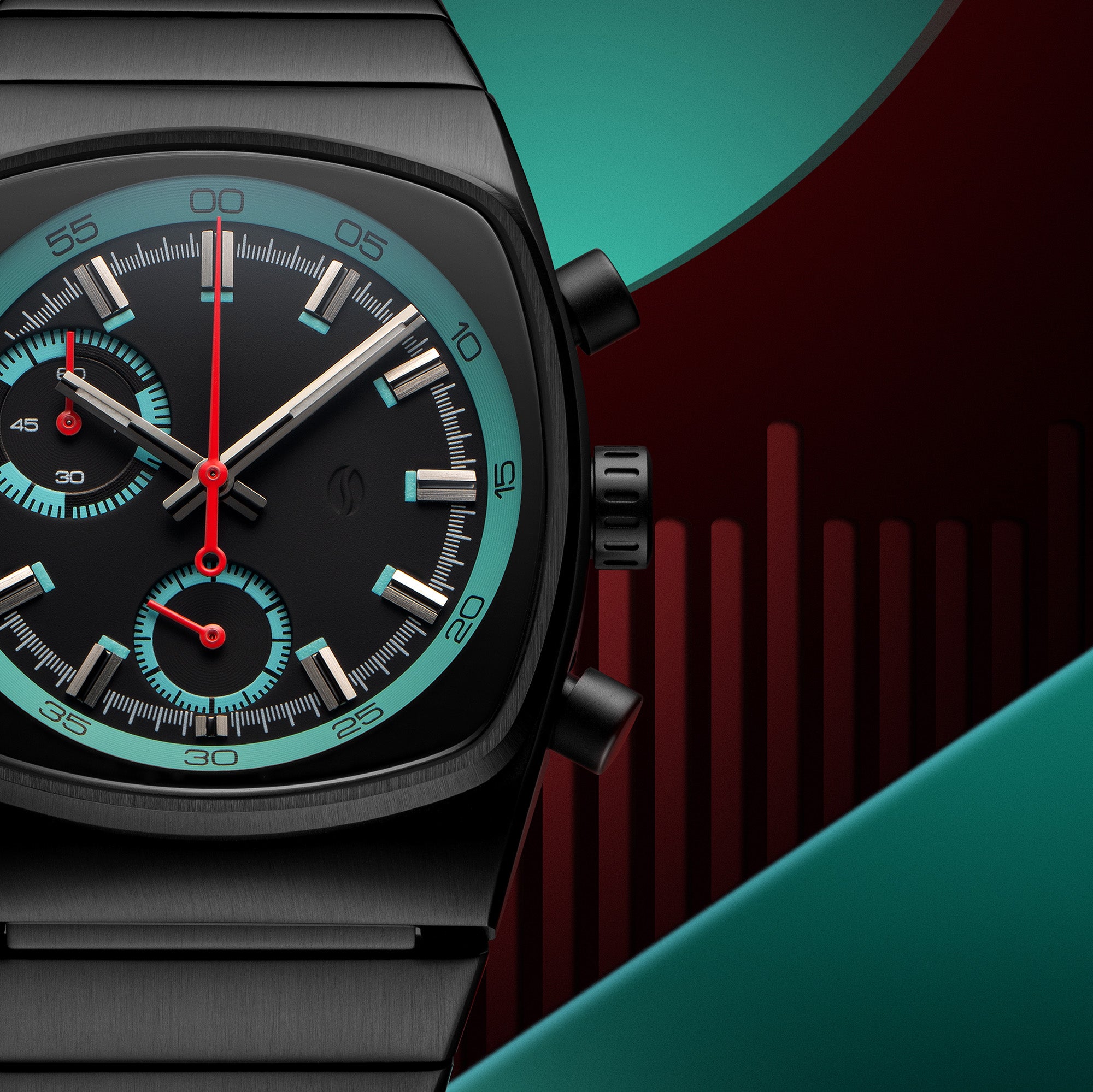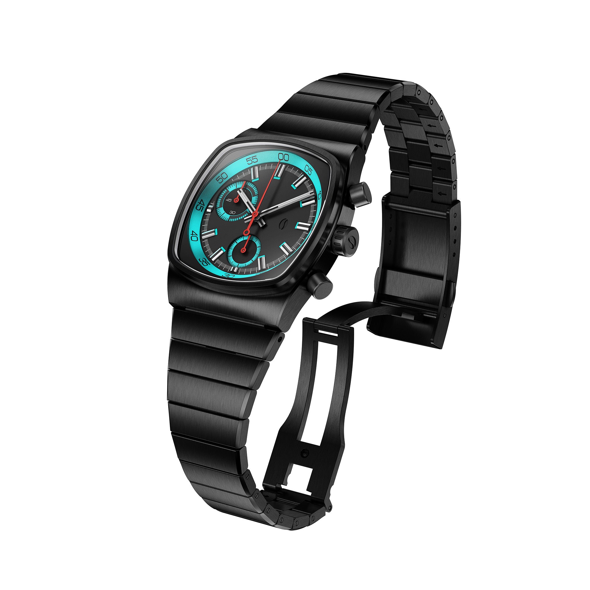 DIAL: BLACK, TEAL-COLOR, RECESSED SUBDIALS