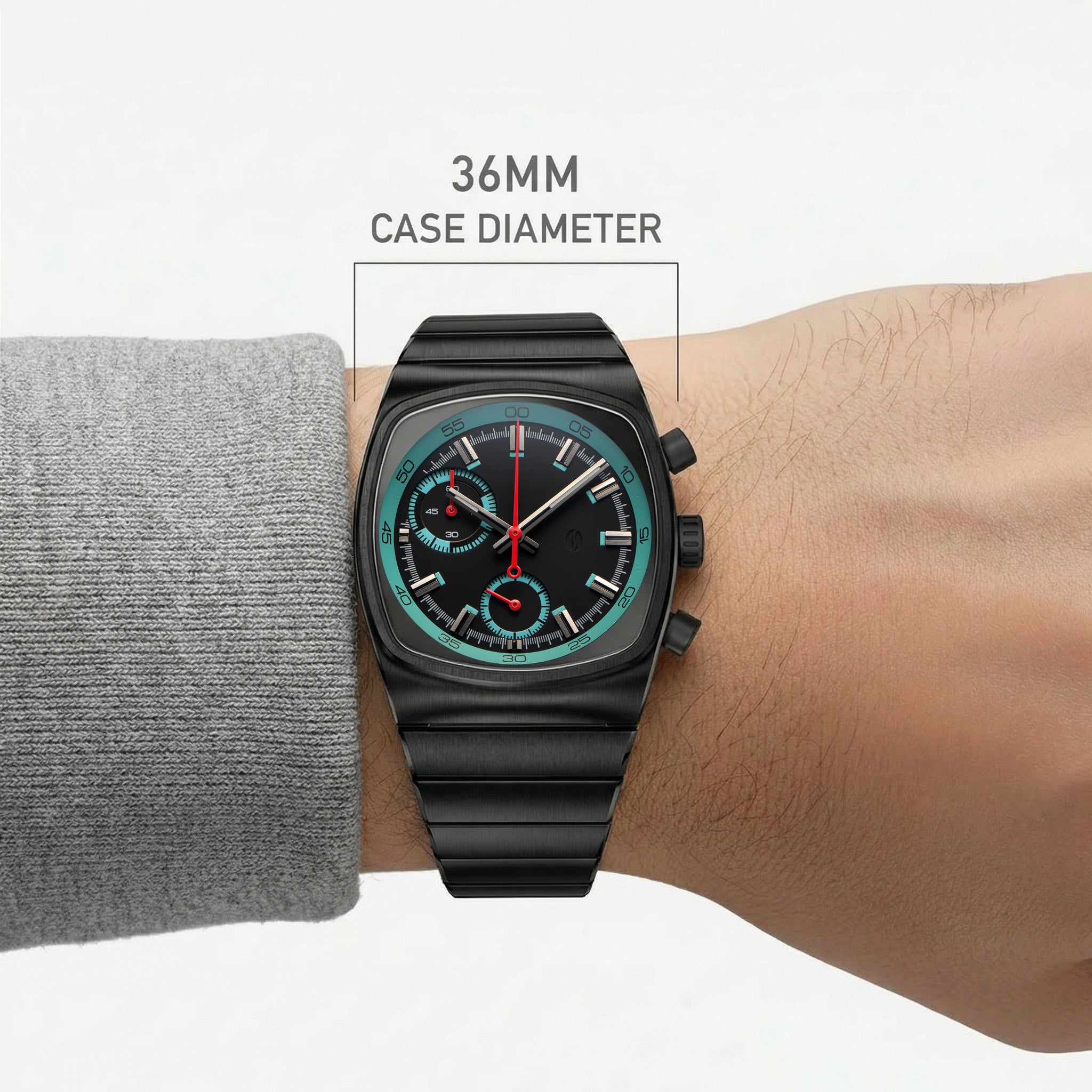Offering a classic - compact style with its 1970s style case. Blended steel and contrasting brushed components give this watch its industrial styling and clarity. Above all else, the 36mm size makes this watch distinctive to its era while making it comfortable and wearable for any occasion.